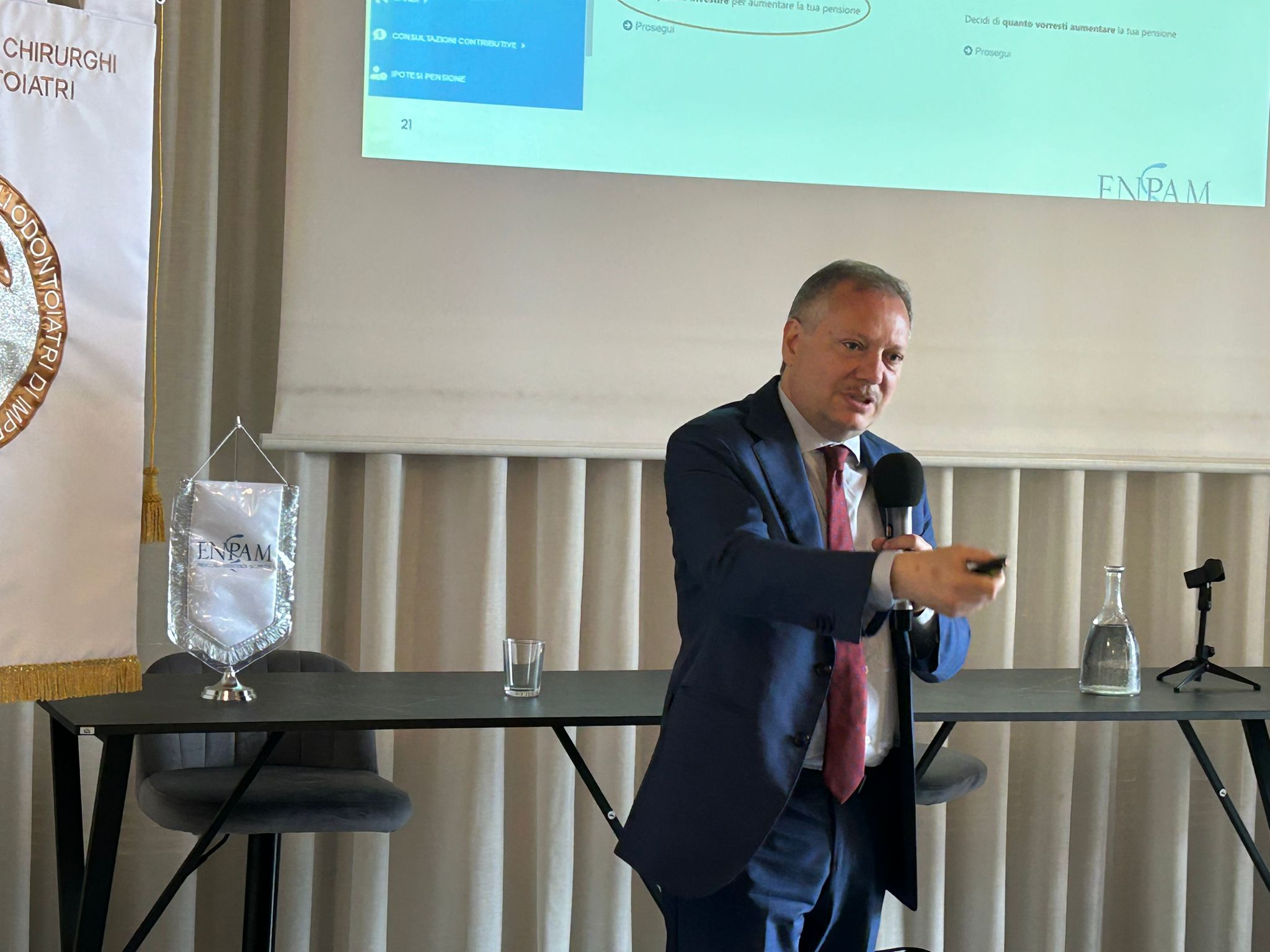 Sono intervenuti il Dott. Dott. Alberto Oliveti, Presidente ENPAM, il Dott. Gianfranco Prada, Odontoiatra, Presidente di SaluteMIA, il Dott. Stefano Mirenghi, Medico Odontoiatra, Presidente di Fondosanità e il Dott. Vittorio Pulci, Direttore Assistenza e Previdenza e Vice- Direttore Generale ENPAM, al fine di approfondire alcuni aspetti di interesse generale e altri più specifici riguardanti la previdenza ed assistenza dei Medici e degli Odontoiatri.